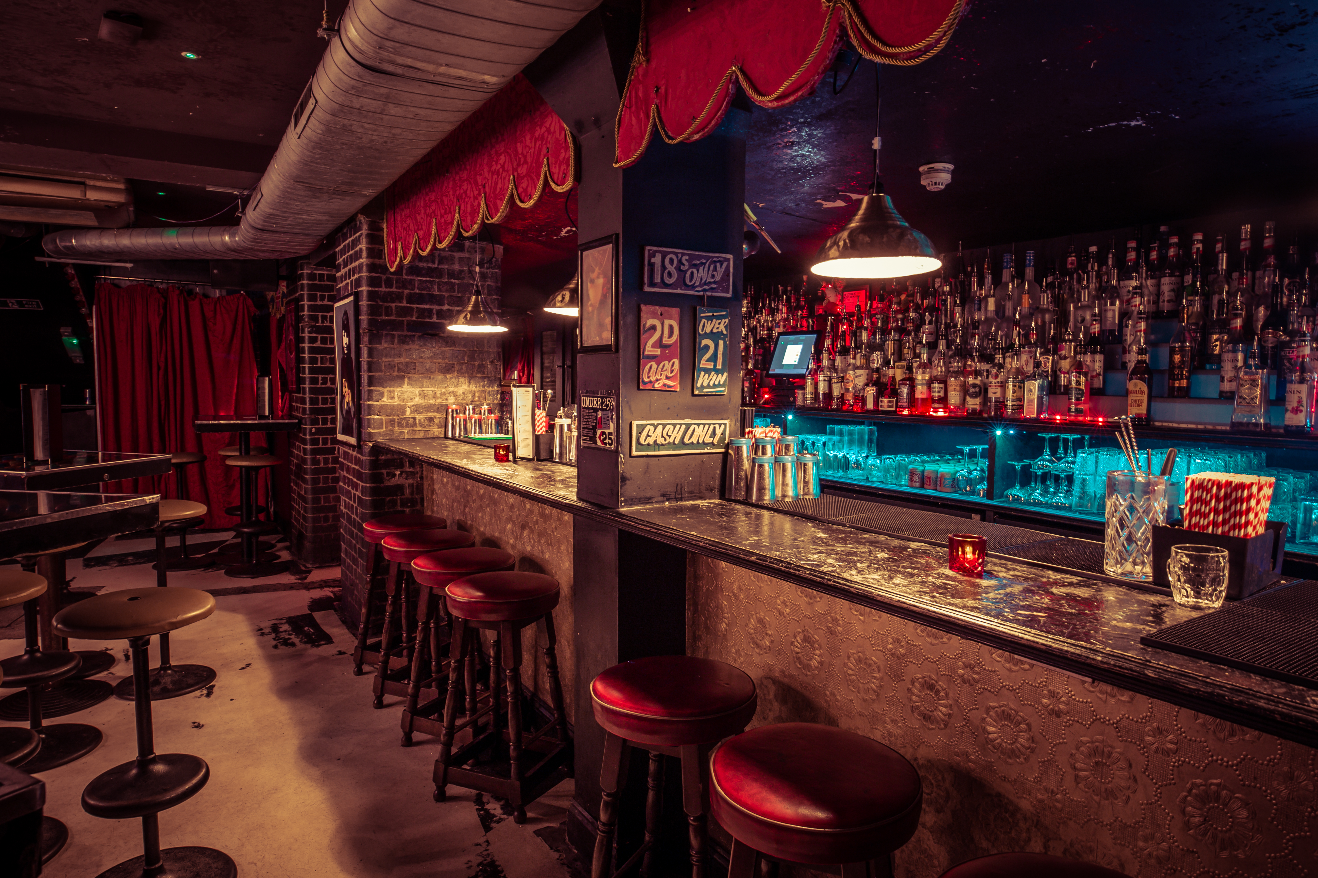 Liverpool Street presents a pleasure land carnival; a “get freaky with it” booze-fuelled circus with all the pimped up fairground nostalgia you’d expect. Think big top-style furnishings, faux-leather seats, ouija board tables, and coloured lights.